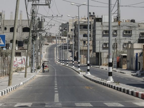 Une rue de Gaza vide pendant une grève générale pour protester contre le sommet à Bahreïn sur le volet économique du plan de paix proposé par l’administration Trump, le 25 juin 2019. (Crédit : SAID KHATIB / AFP)