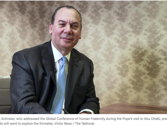 Rabbi Schneier, who has been called the Rabbi to the Muslim world, visited the UAE to address the Global Conference of Human Fraternity last year during the Pope’s visit.