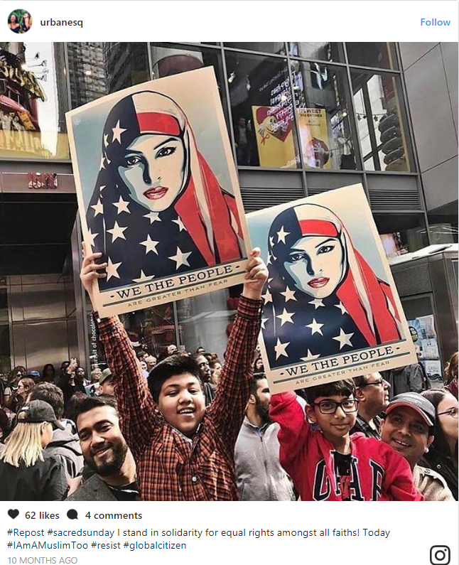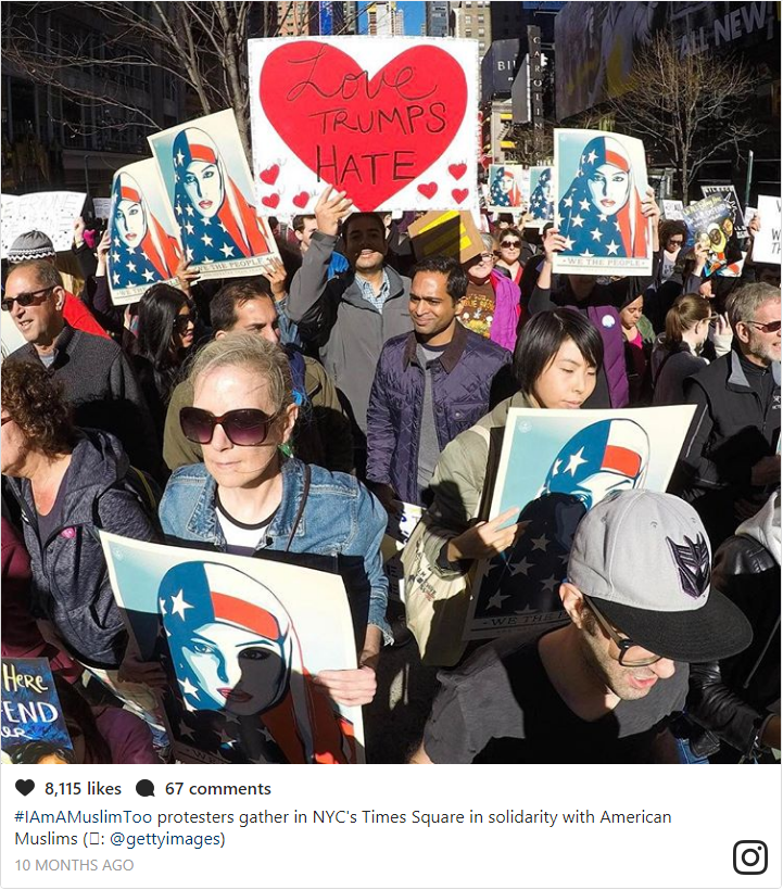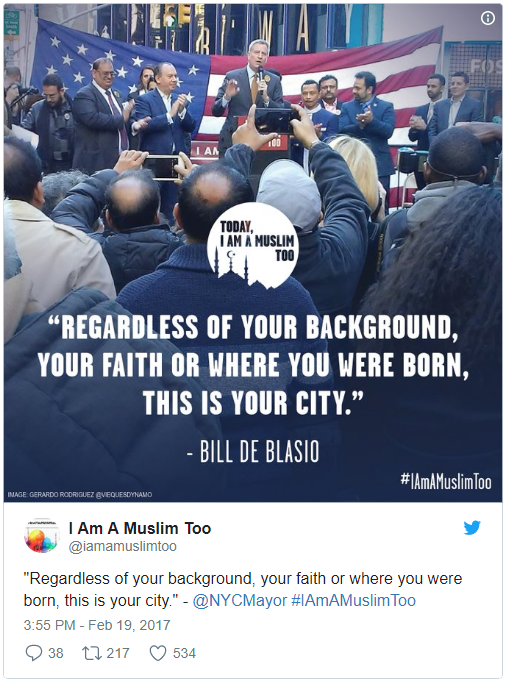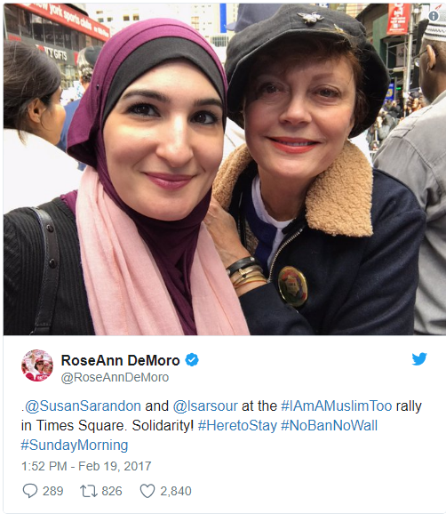 The “Today, I Am A Muslim Too” rally was co-hosted by music mogul Russell Simmons and featured (of course) Mayor Bill DeBlasio. Chelsea and Charlotte marched alongside the likes of Susan Sarandon, Linda Sarsour, and various NYC politicians and religious leaders.