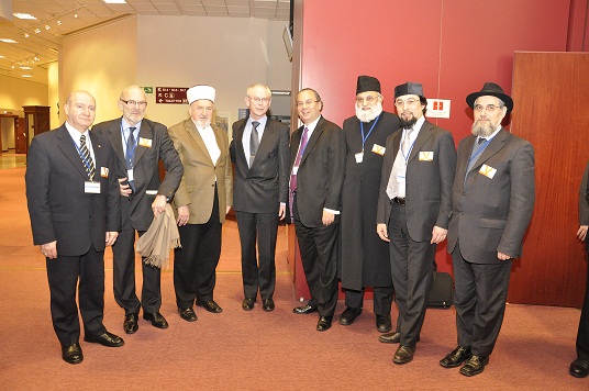 Rabbi Marc Schneier, president of the Foundation for Ethnic Understanding (fourth from right) and Herman Van Rompuy, president of the European Council (fourth from left) with leading rabbis and imams from around Europe standing together against anti-Semitism and anti-Muslim bigotry at 1st Gathering of European Muslim and Jewish Leaders in Brussels.