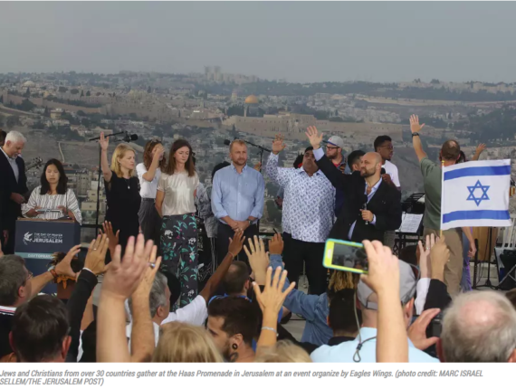 The event marked the annual Day of Prayer for Peace in Jerusalem, an observance that was started by Evangelical co-chairmen of Eagles’ Wings, Dr. Jack W. Hayford and Bishop Robert Stearns, in 2002 and is marked around the world on the first Sunday of October.