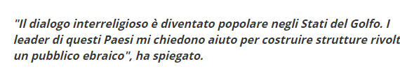 Dei 6 Stati del Golfo il Bahrein sarà il primo a riconoscere Israele, secondo il rabbino consigliere del monarca del Bahrein. Negli ultimi anni, Manama ha più volte fatto capire a Tel Aviv di essere pronta a riallacciare i rapporti.