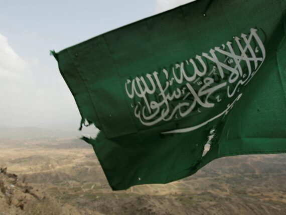 Saudi Arabia’s national flag is seen at the Khoba frontline border with Yemen (credit: REUTERS/FAHAD SHADEED)