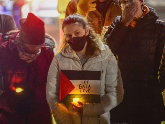 People gather in Pliny Park in Brattleboro, Vermont, for a vigil, Monday, Nov. 27, 2023, for the three Palestinian-American students who were shot while walking near the University of Vermont campus on Saturday, Nov. 25. The three students were being treated at the University of Vermont Medical Center, and one faces a long recovery because of a spinal injury, a family member said. | Kristopher Radder, Associated Press More