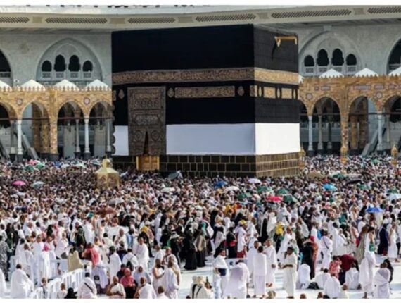 Muslim worshippers around the Kaaba, Islam’s holiest shrine, at the Grand Mosque in Saudi Arabia’s holy city of Mecca on June 4, 2024 as pilgrims arrive ahead of the annual hajj pilgrimage.