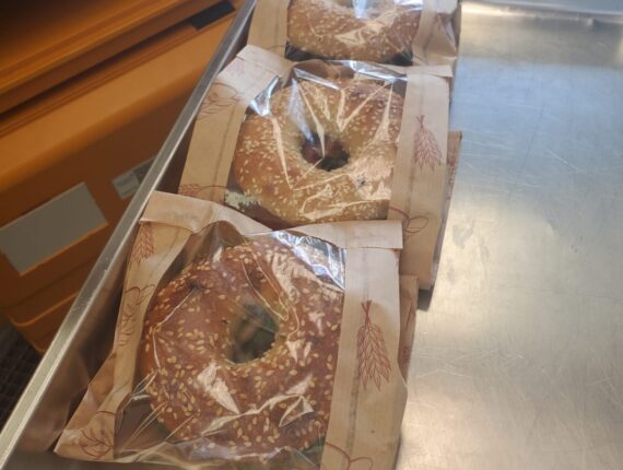 The bagels are being baked in a space provided by Qatar Airways. (Courtesy of Rabbi Marc Schneier)