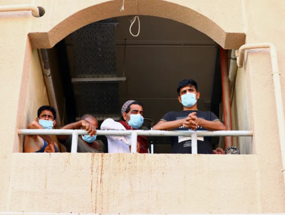 Workers wear masks during the outbreak of the coronavirus disease (COVID-19) in Dubai, United Arab Emirates April 23, 2020